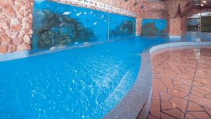海底温泉は浴槽となりの大水槽で魚が泳ぐ龍宮城の入浴気分のお魚風呂で温泉を満喫できます!