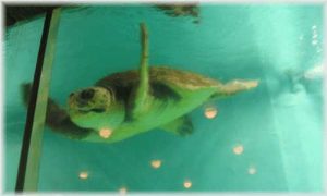 水槽の中にはたくさんの海水魚と大きなウミガメが2匹いて、これを見ながら入浴できるわけです!