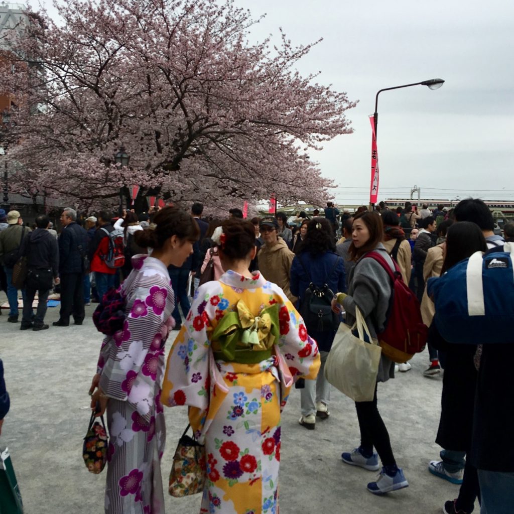最近は日本各地でも着物姿で桜の花見に出かける人が多くなりました。