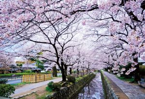桜の種類としても料亭など立ち並ぶ、白川の流れに沿ってソメイヨシノなどの桜並木が続いています。